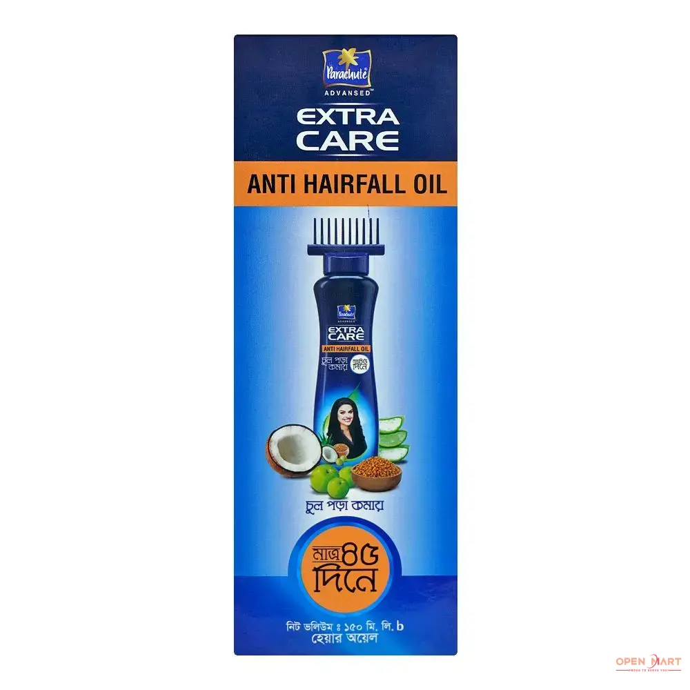 Parachute Advanced Extra Care Anti Hairfall Oil is specially formulated to reduce hair fall and strengthen hair from the roots. Infused with the goodness of Coconut Oil, Aloe Vera, and essential nutrients, it deeply nourishes the scalp and improves hair strength and texture.