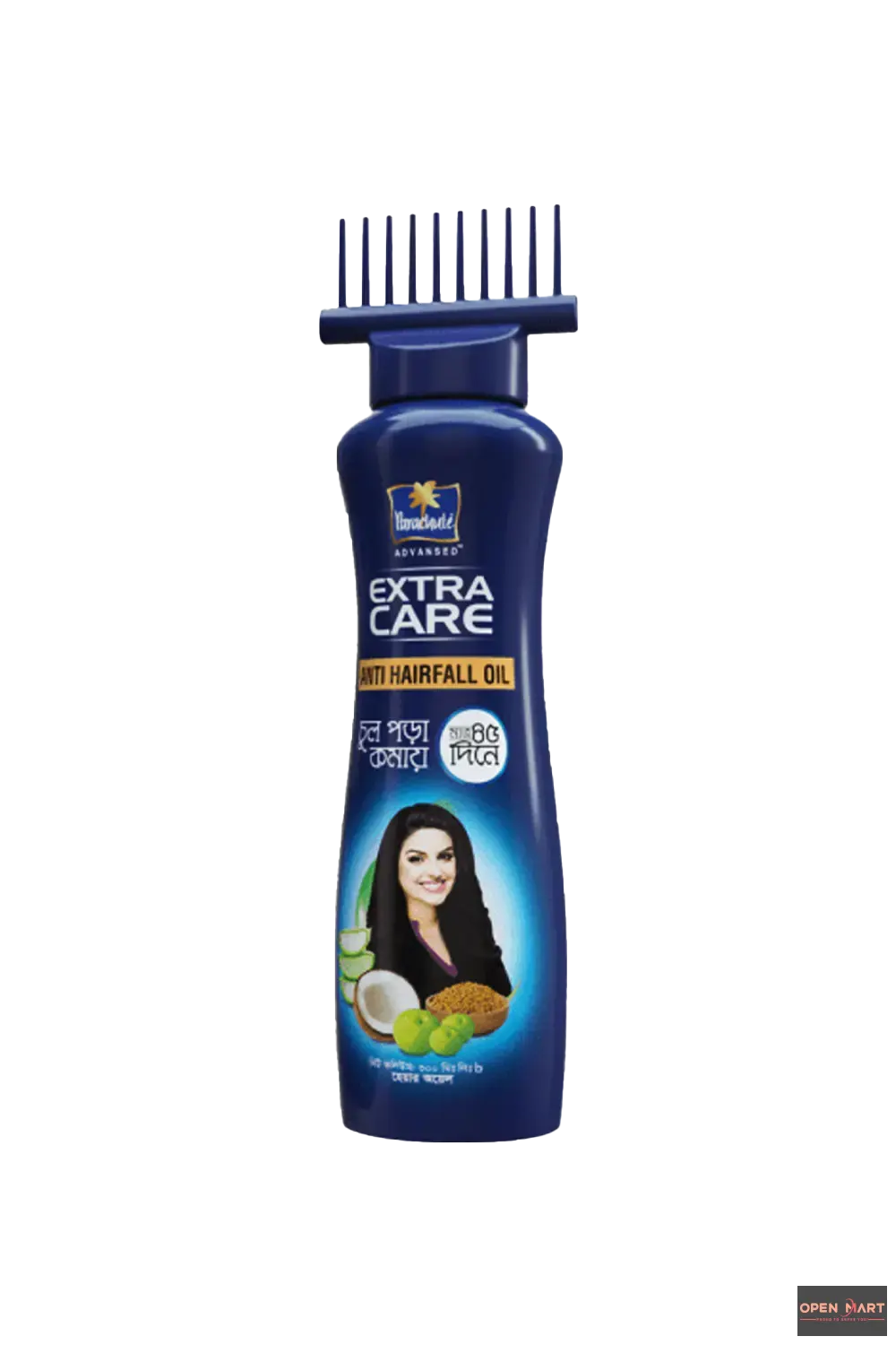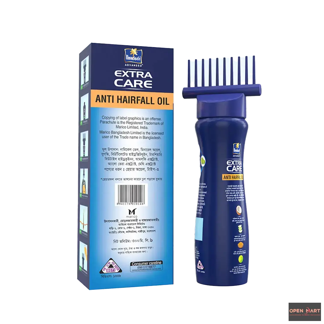Parachute Advanced Extra Care Anti Hairfall Oil is specially formulated to reduce hair fall and strengthen hair from the roots. Infused with the goodness of Coconut Oil, Aloe Vera, and essential nutrients, it deeply nourishes the scalp and improves hair strength and texture.