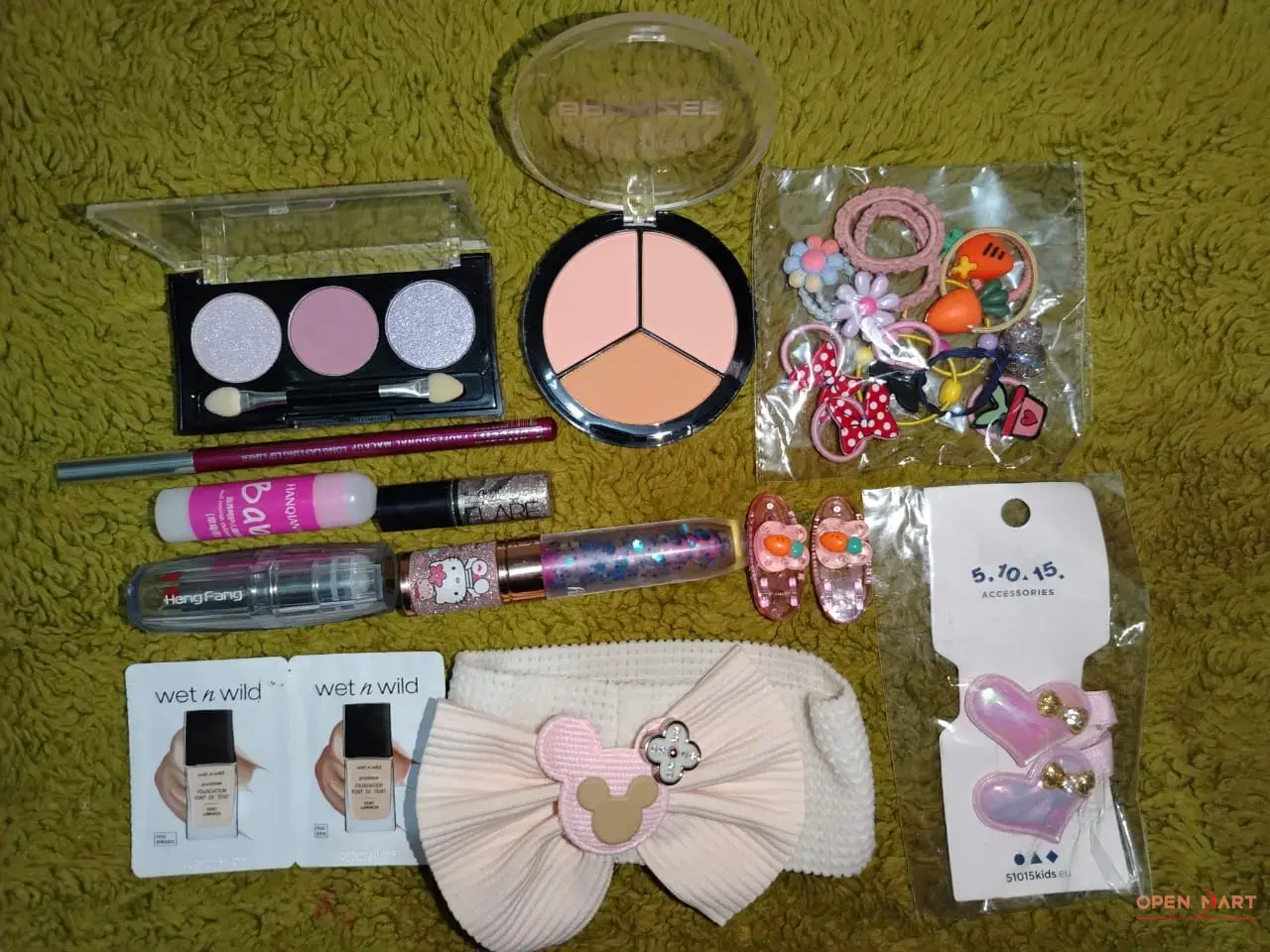 This mix deal includes a beautiful combination of imported cosmetics and trendy hair accessories. All items are stylish, cute, and carefully selected to suit everyday use as well as gifting.